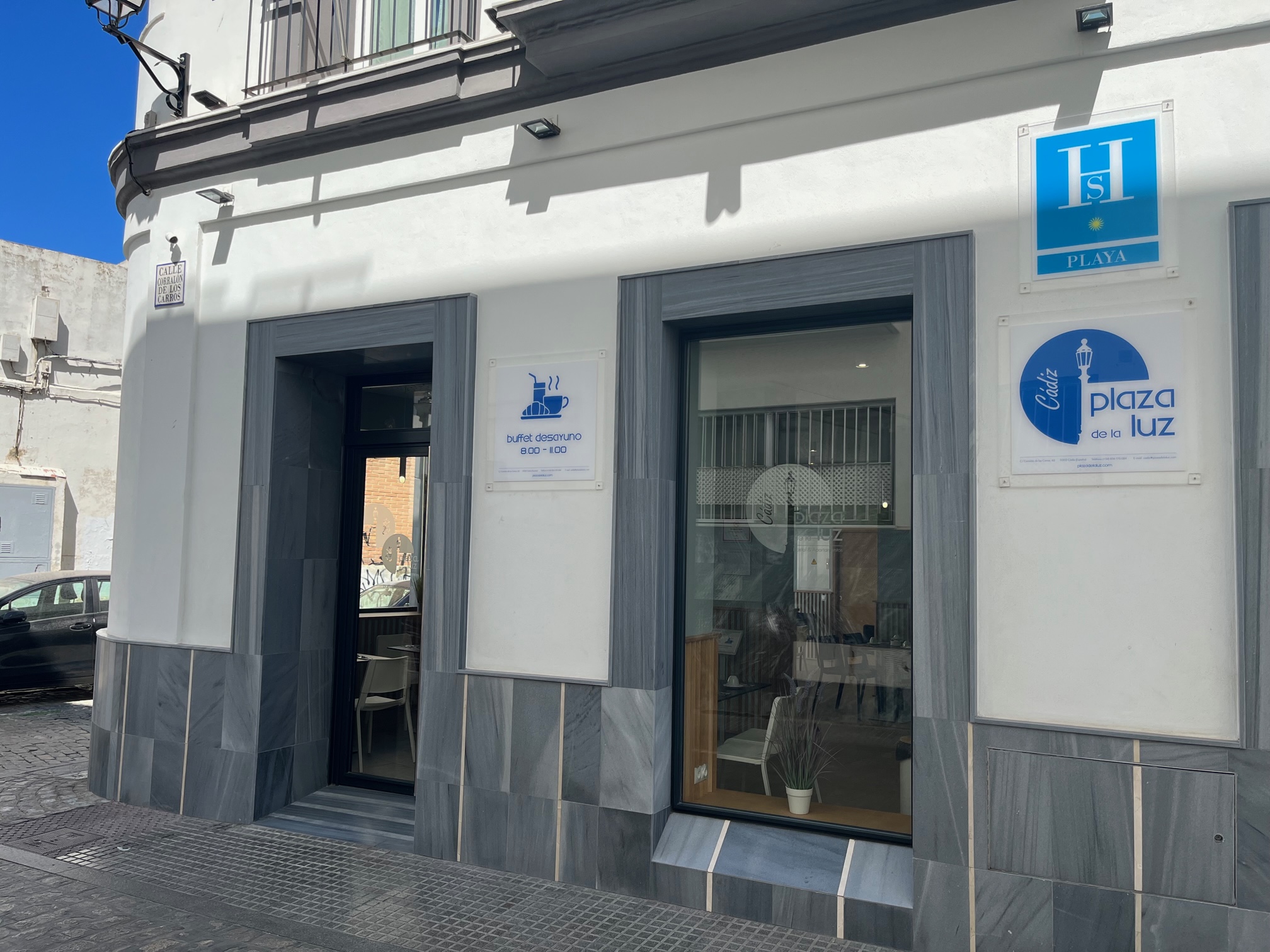 Redacción de proyecto e interiorismo por parte de Gumersindo Fernández Arquitectos. Dirección de obra y gestión de la documentación administrativa para licencia de obra y apertura por nuestros técnicos; y posterior ejecución de obra de adecuación de local para salón de buffet desayunos para el Hostal & Apartamentos Plaza de la Luz en C/ Corralón de los Carros, en Cádiz